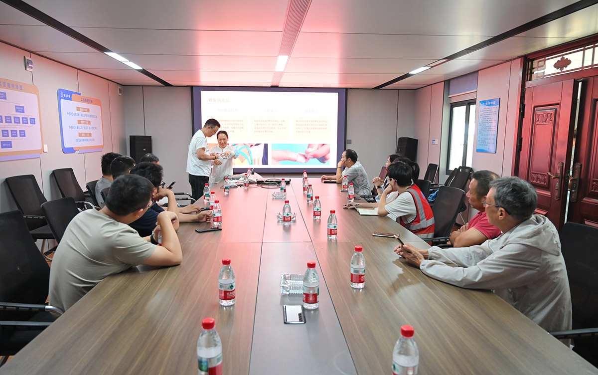 6月18日,秀湖頤養(yǎng)院項(xiàng)目部創(chuàng)新活動載體,凝聚安全合力。將黨建工作與安全生產(chǎn)深度融合,聯(lián)合參建單位開展了“紅色工地”黨建聯(lián)建安全主題活動?;顒犹貏e設(shè)置了急救知識培訓(xùn)環(huán)節(jié),邀請專業(yè)醫(yī)護(hù)人員為項(xiàng)目管理人員和一線工人講解心肺復(fù)蘇(CPR)、創(chuàng)傷包扎、中暑急救等實(shí)用技能。通過現(xiàn)場演示和互動實(shí)操,有效提升了工友們在緊急情況下的自救互救能力,將“生命至上”的理念落到實(shí)處,為項(xiàng)目安全生產(chǎn)注入了“紅色”保障。