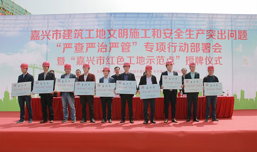 4月12日上午,在北師大嘉興附中遷建工程綜合區(qū)項目工地現(xiàn)場舉辦了首批“嘉興市紅色..
