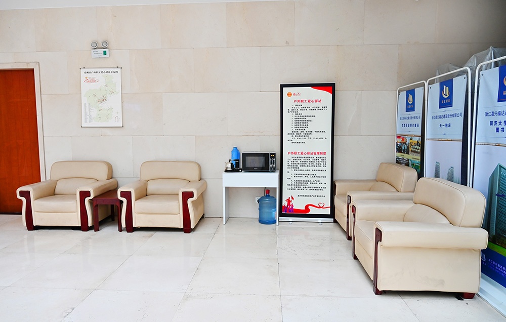 戶外勞動者是文明城市創(chuàng)建的主力軍,也是最值得尊敬的人。為加強全區(qū)新時代文明實踐點建設,進一步推動文明城市創(chuàng)建工作,讓城市更有“溫度”,今年9月,秀洲區(qū)全面啟動“戶外職工愛心驛站”創(chuàng)建工作,從而有效緩解環(huán)衛(wèi)工人、出租車司機、公交司機、交通警察、城管人員、快遞小哥、市政維修工和建筑工人等戶外勞動者飲水、休息、飯菜加熱、取暖納涼、手機充電、臨時避雨等現(xiàn)實問題。浙江嘉興福達建設股份有限公司積極參與其中,在寶地大廈一樓,配備了桌椅、飲水設備、手機充電設施、應急藥箱、微波爐、冷暖設備等供戶外勞動者免費使用,還增設了閱讀區(qū),供戶外職工休息時閱讀。